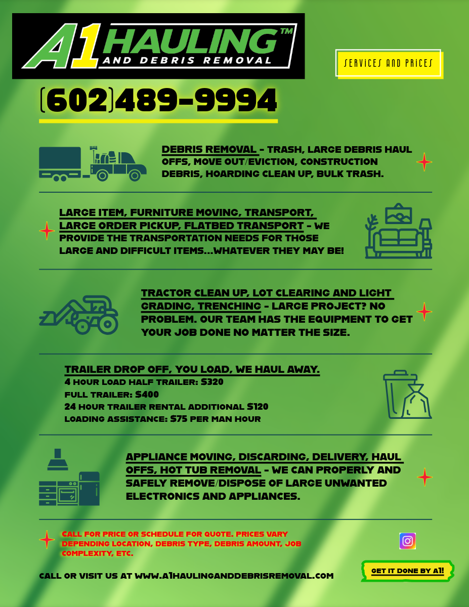 We're the best in our field, "A1 since day 1!" and it's all thanks to the incredible relationships we've formed with our clients. We make your hauling and debris removal needs easy. Unlike our competitors, we're invested in developing a personal connection with each and every one of our customers, by providing quality service. Get in touch with us when you're ready to learn more; we can't wait to meet you!